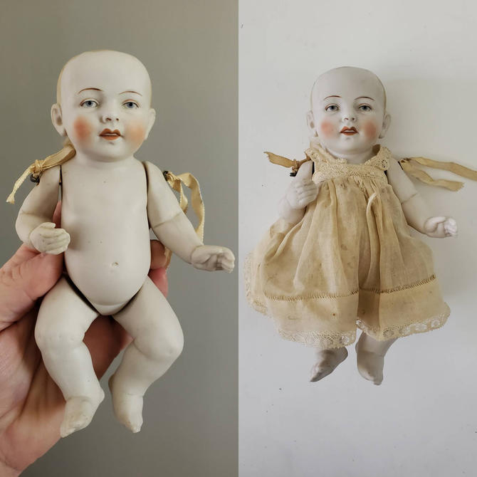From the 1860s to 1870s most bisque or China heads were found on Lady dolls children were usually represented as All bisque dolls. One Tiny Antique Bisque Baby Doll Jointed Made in Japan 1920s 2 34 Long GypsyFeather 5 out of 5 stars 3352 1400. ANTIQUE GERMAN HEUBACH KOPPELSDORF BABY DOLL - 23 INCH Antique German HEUBACH KOPPELSDORF 267 bisque head baby doll a lovely big girl from the 1920s wearing antique smock front dress and cotton slip.