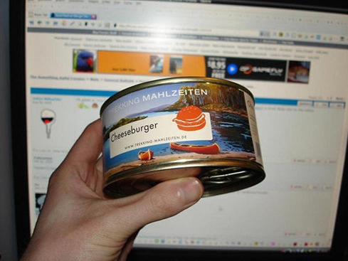 Cheeseburger in a can. For users logging in via Facebook. CheeseBurger in a Can. Stick your can in hot water or heat the burger up in a pan. I bought two of these things so I could put them to the test by reheating using the. Cheeseburger in a can. The cheeseburger which is marketed under the Trekn Eat label guarantees unrestricted enjoyment in the mountains and in other extreme.